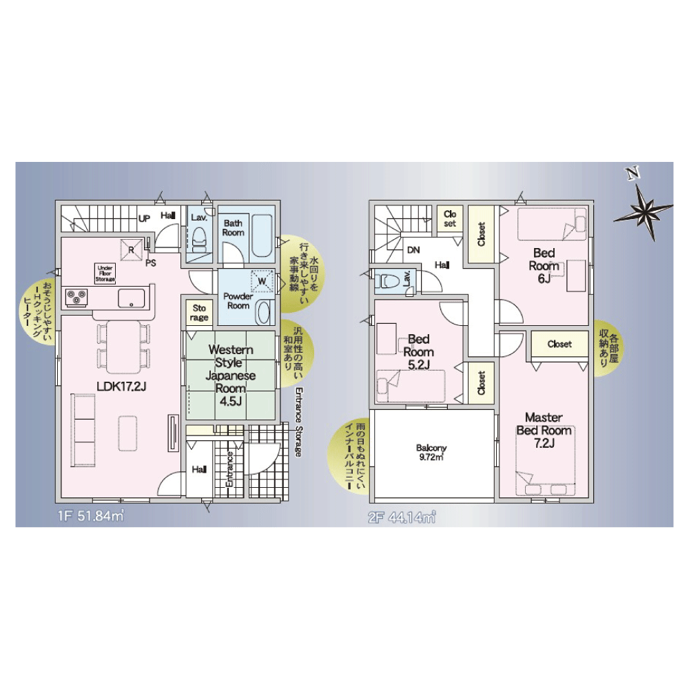- 木造スレートまたはアスファルトシングル葺き 2階建て