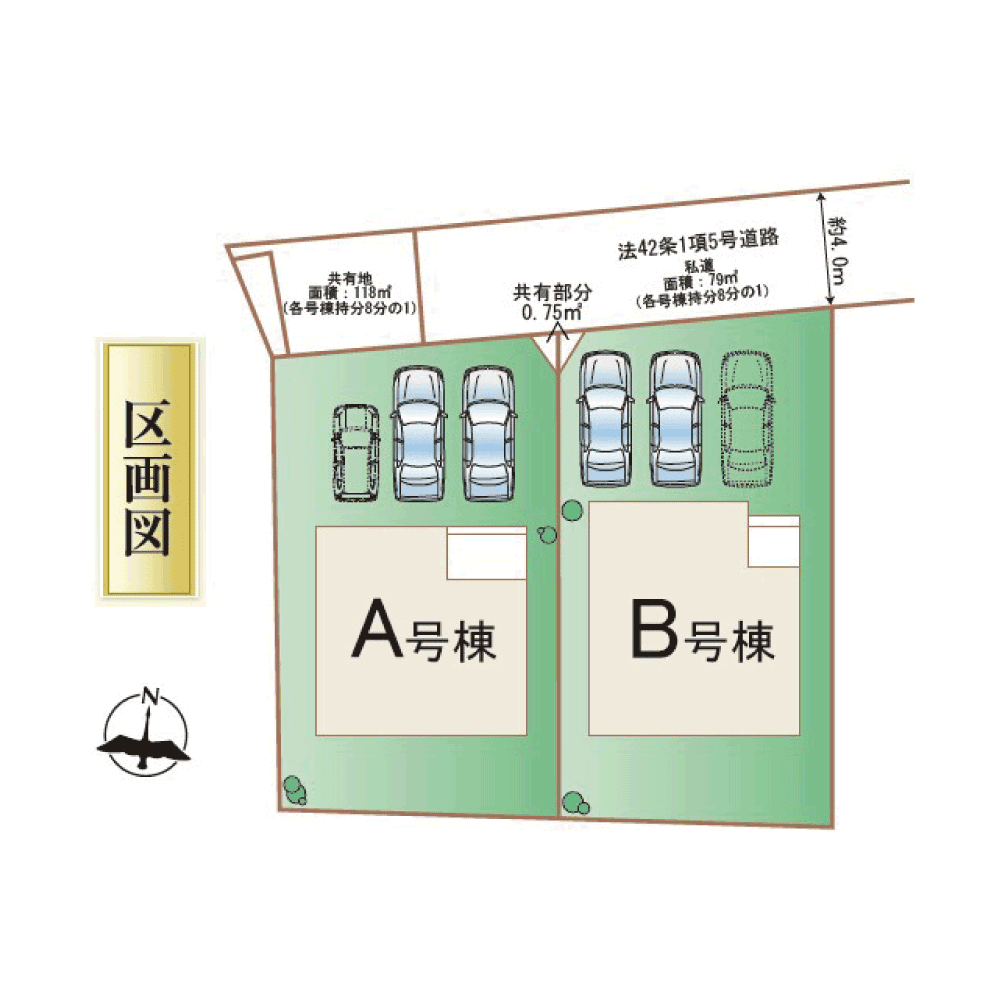 - 北側私道約4.0m(各持分8分の1)