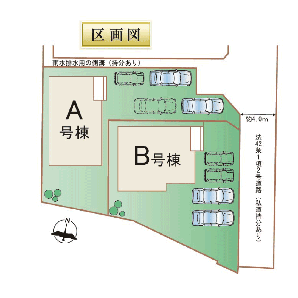 - 東側約4.0m私道、北側約4.0m私道