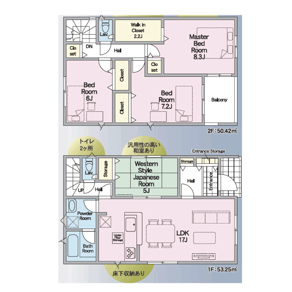 - 木造スレートまたはアスファルトシングル葺き 2階建て